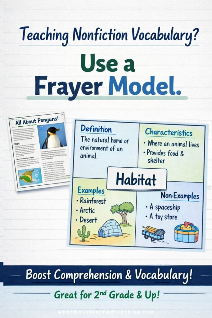 In this post, I’ll show you exactly how to introduce a Frayer Model in an elementary classroom, how to scaffold it for young learners, and how to use it with nonfiction texts like animal articles and biographies. You’ll see practical classroom routines and a complete Frayer Model example that you can use right away.