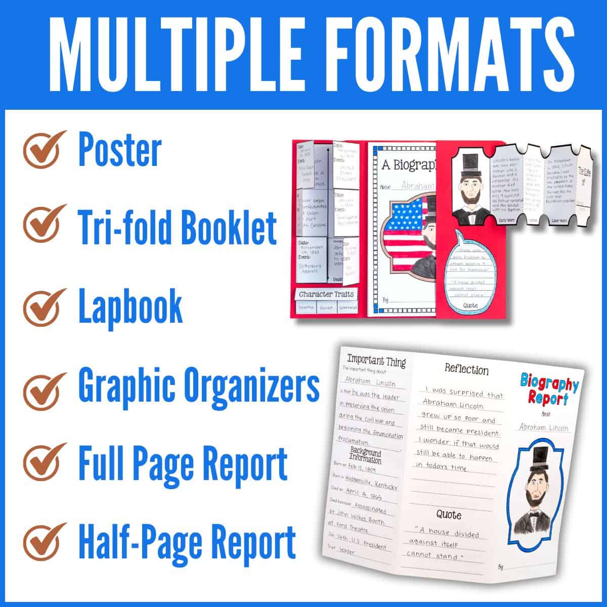 With five different report options and a wide variety of pages to choose from, teachers can easily differentiate for student ability levels and customize the project to fit their classroom needs. This resource works perfectly for biography genre studies, social studies units, and informational writing projects.