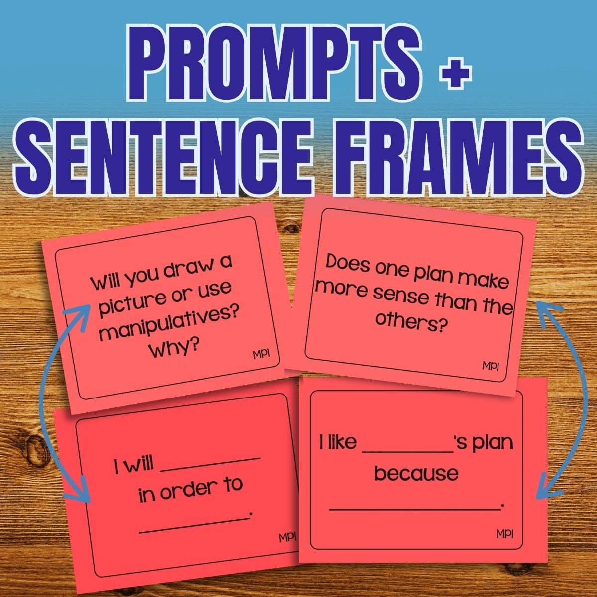 Each set of Mathematical Practice Cards has two pages of cards, one with the prompt and one with a possible student response (sentence frame). Some prompts & responses are similar, but with more complex questions. Choose the cards that work for your students.
