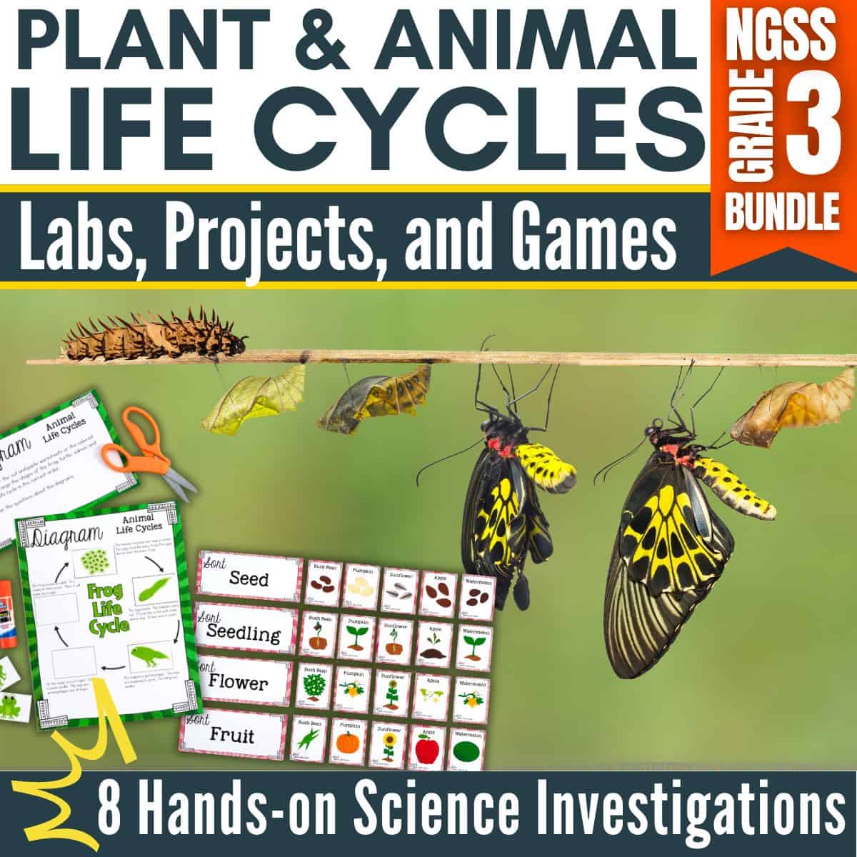 Growth & Cycles Plants & Animals Science Stations for Third Grade Next Generation Science Standards include 8 different science stations where students can deepen their understanding of plant life cycles and animal life cycles. The focus is on NGSS 3-LS1.B and includes concepts such as animal life cycles, plant life cycles, and parts of a plant.
